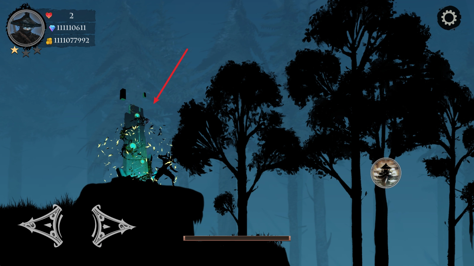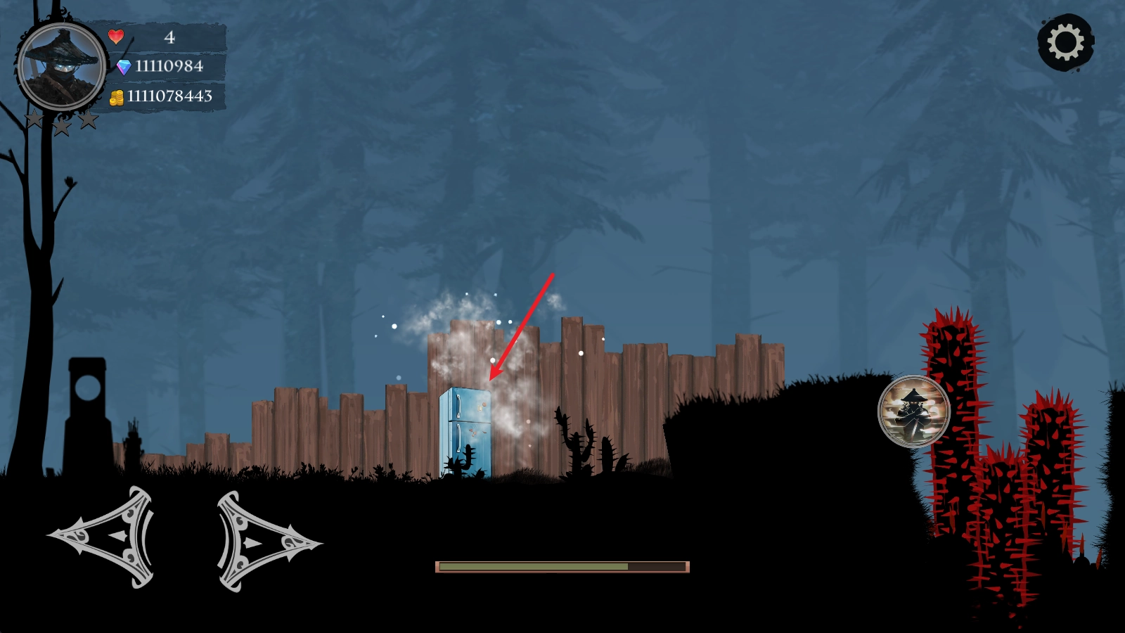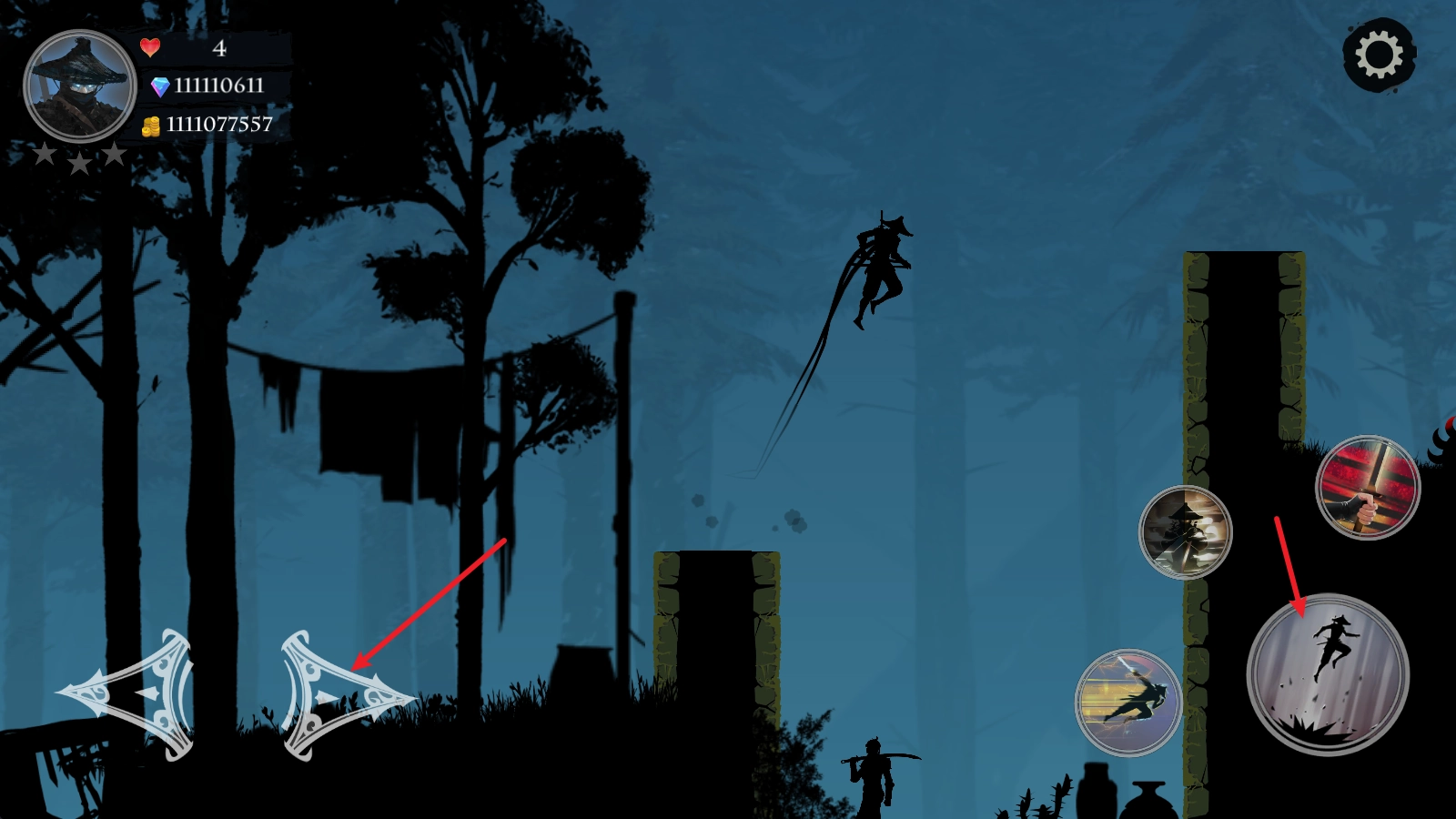 当我们靠近敌人后,点击右侧的攻击键,就能用武士刀发起攻击。