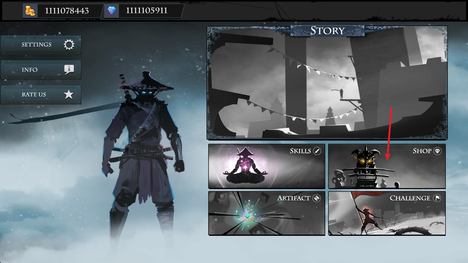 在主界面中点击右侧的shop。