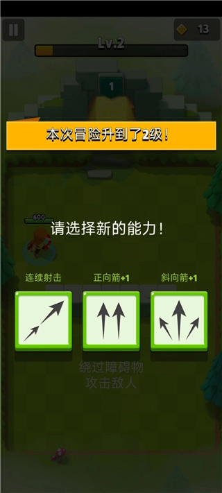 进入关卡后,通过移动摇杆来操控角色,当角色遭遇怪物时,会自动射出弓箭展开攻击。