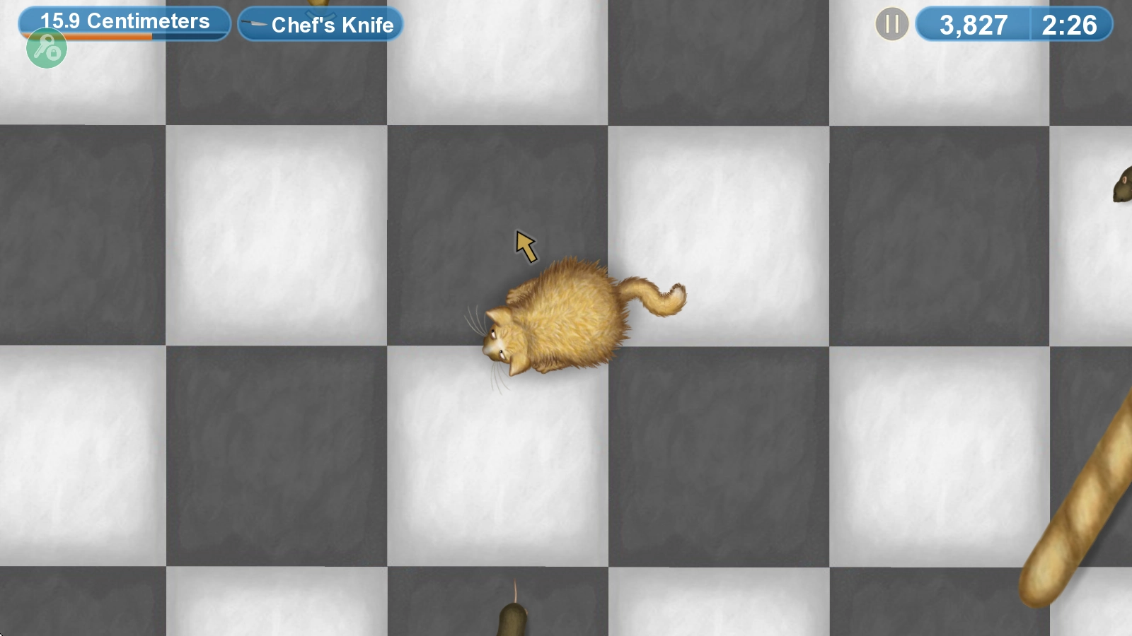 在游戏里,只要拖动屏幕就能操控猫咪移动,而带有方块标识的物品意味着可以被吞噬。