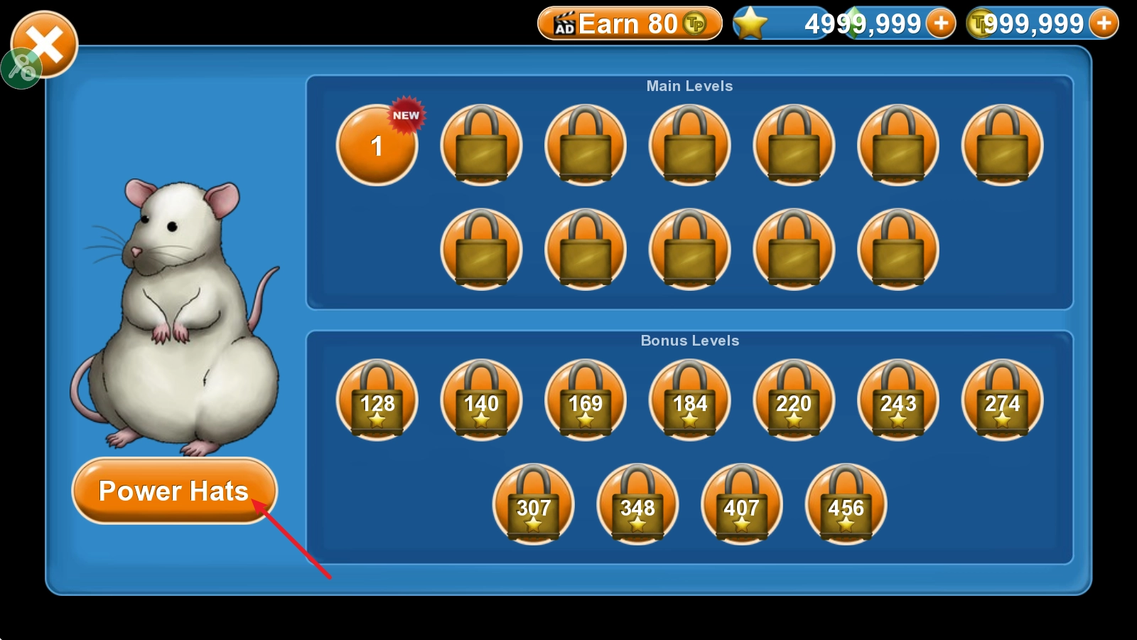 进入新的场景关卡后,就会启用相应的新角色,并选择Power Hats。