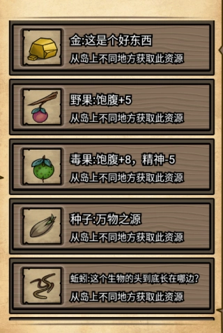 金、野果、毒果、种子、蚯蚓;