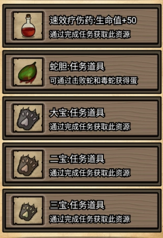 速效疗伤药、蛇胆、大宝、二宝、三宝;