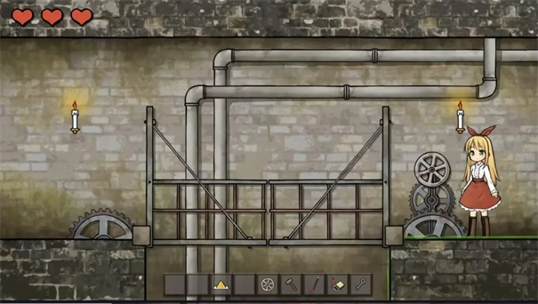 回到三楼右侧,用锤子敲破墙壁,获取道具【阀门】。再返回下水道,将桥放下来。