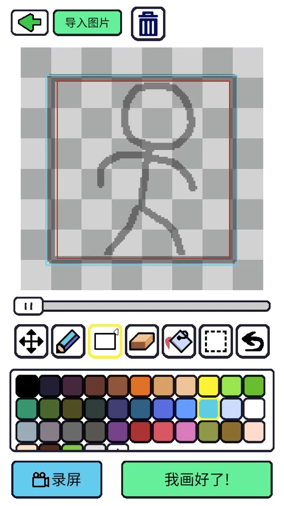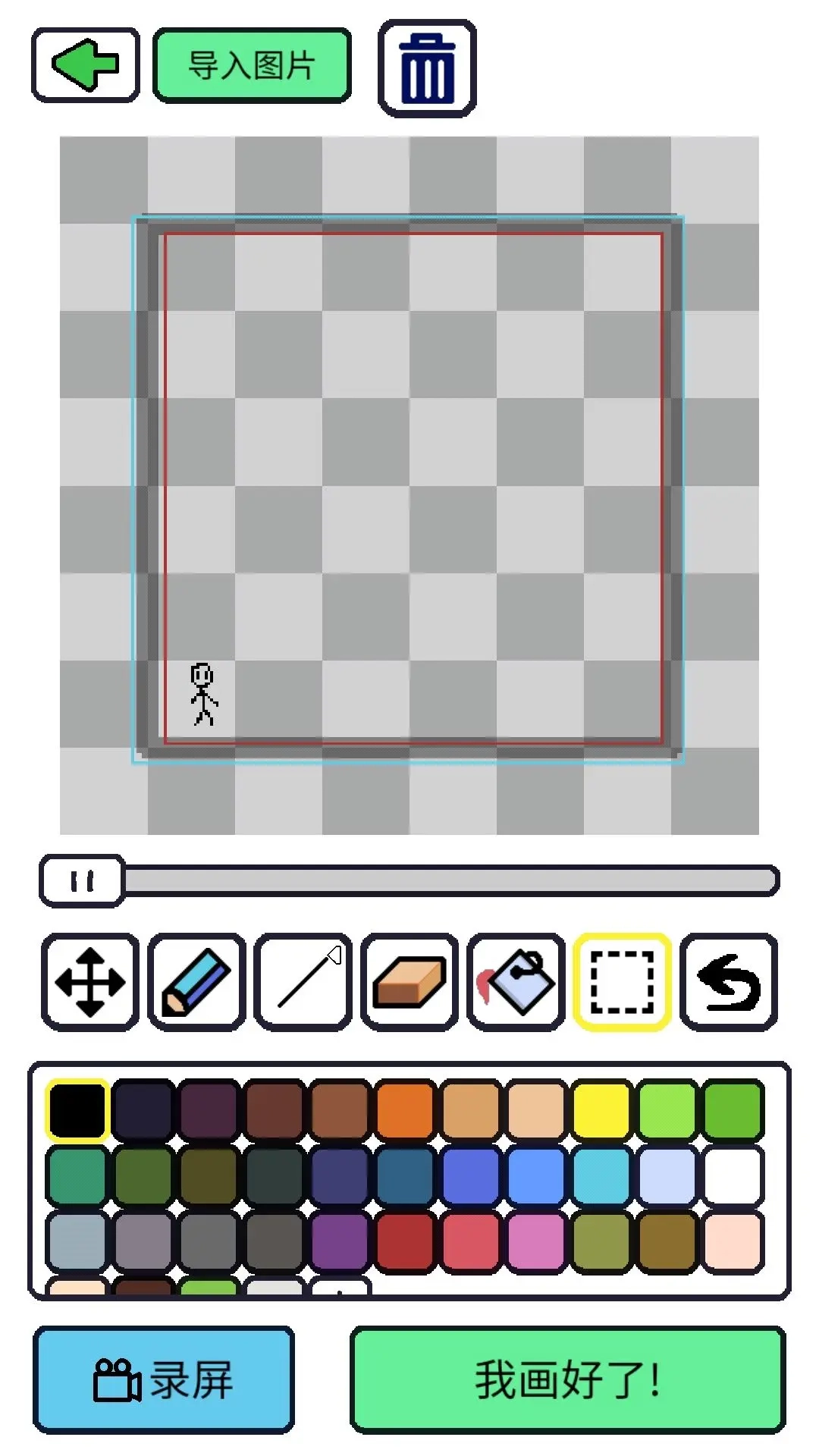 一般任何时候绘图都会有个框框,蓝框大小就是游戏内地图设计时的方格最大大小,红框。
