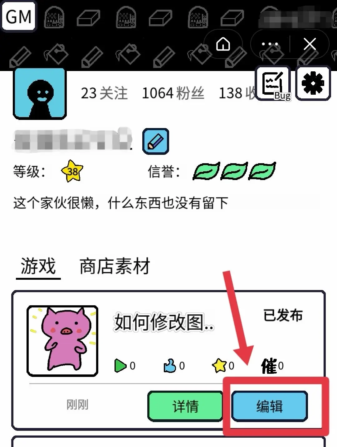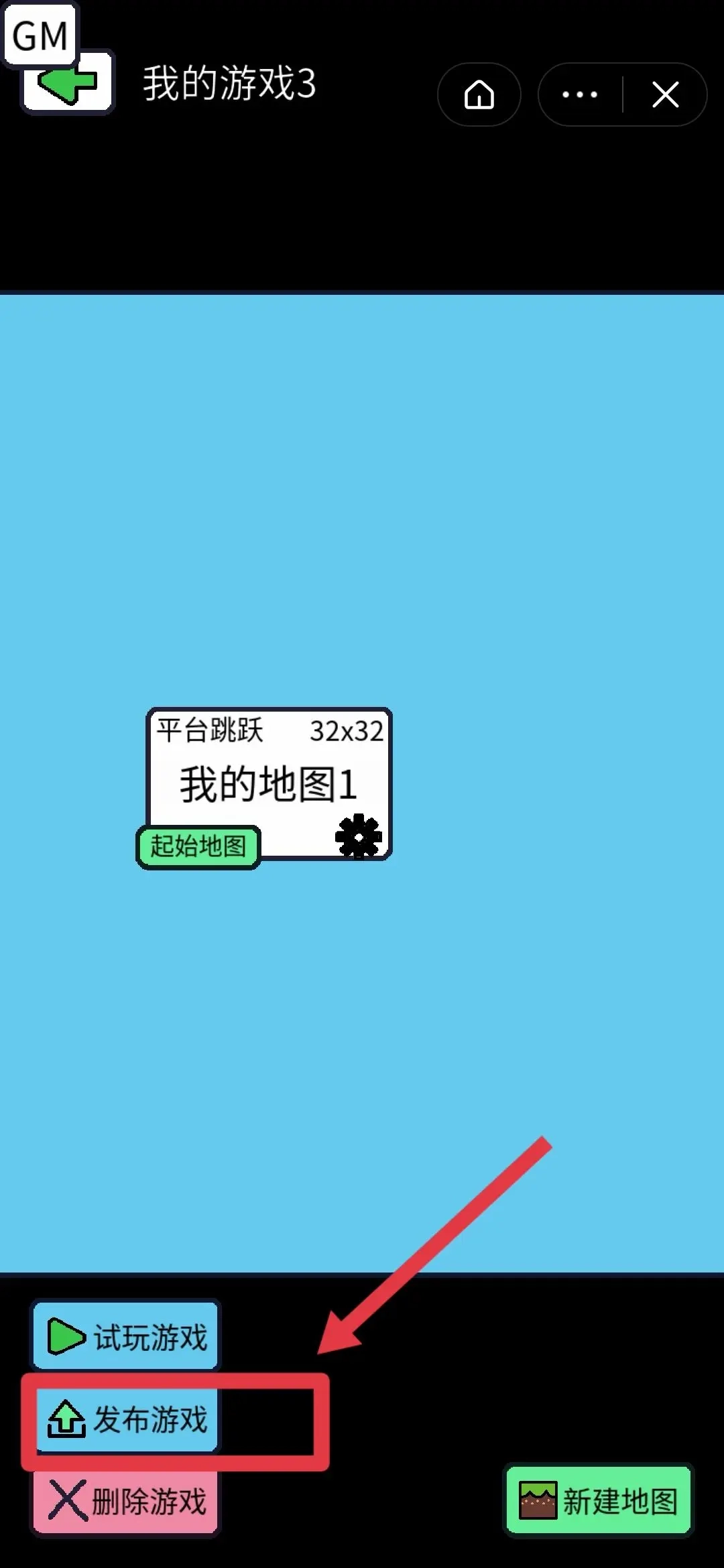1. 制作游戏,做完游戏后,选择“发布游戏”。