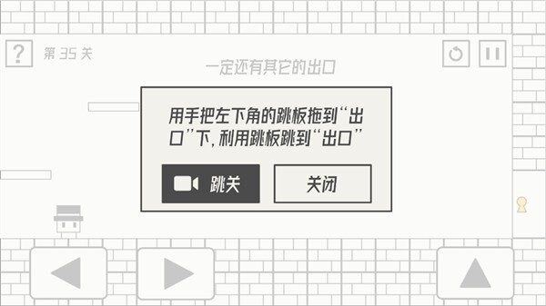 第35关通关方法:用手将最下方角落的跳板拖拽至“出口”下方,借助跳板跳到“出口”处。