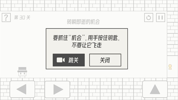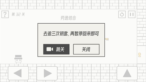 第32关通关攻略:追逐钥匙三次,然后暂停游戏并返回,就能过关。