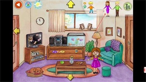 点击上下左右箭头就能切换场景,例如你要是想去客厅,点击左边的箭头就行。