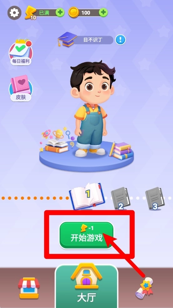 1.主页面中点击"开始游戏"按钮会消耗能量进入关卡,成功通关后还能逐步解锁更多奖励和新的挑战内容。