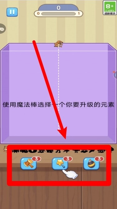 2.使用下方道具按钮进行操作,魔法棒、星星、炸弹等可在关键时刻助力,让你顺利完成合成升级。