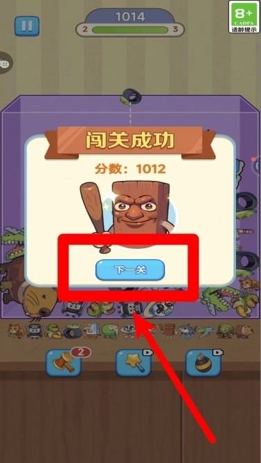 3.完成关卡目标后会出现通关提示,显示得分与进化形象,点击下一关按钮即可继续挑战更多内容。