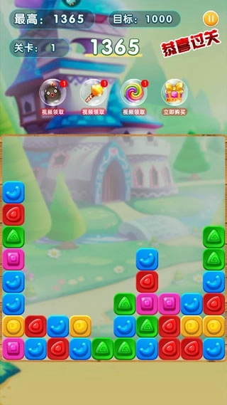 1、游戏的每一个关卡里,都设置了各式各样的方块与糖果。玩家需要完成消除三个或三个以上方块的操作,这能让整个游戏过程变得更具趣味性。