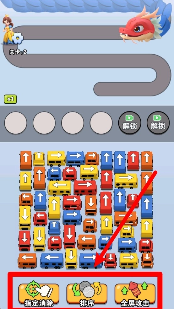 3.合理运用道具:在路径复杂或局势混乱的情况下,可借助“排序”“全屏攻击”等功能性道具,快速清除障碍以提升效率。
