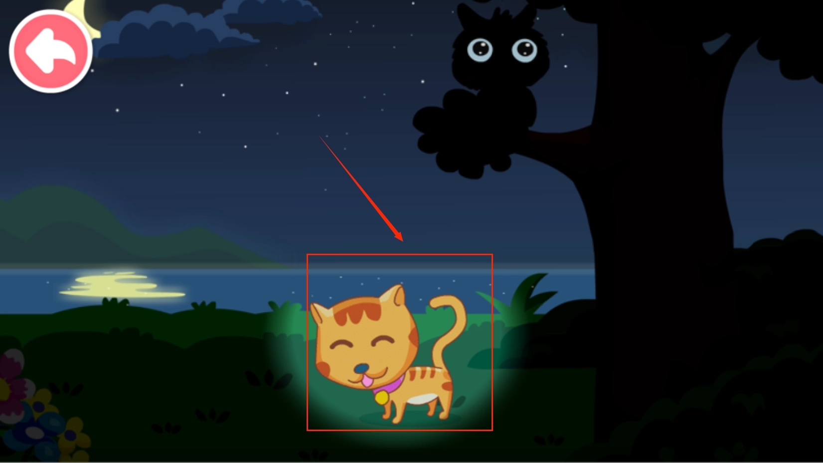 3、在漆黑的夜晚,点击猫头鹰后,借助光亮搜寻那些被黑暗藏匿起来的小动物,并把它们收集起来。