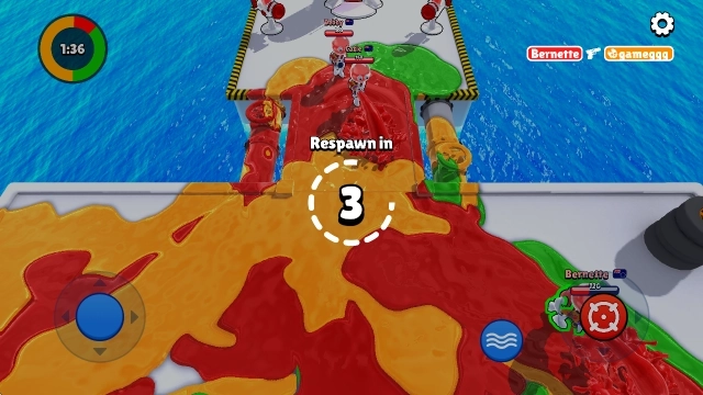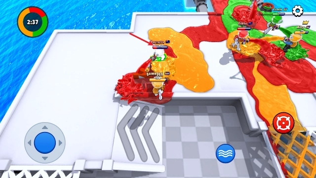 2、遇到对手后就能用颜料攻击对方,把所在区域染成你的颜色。