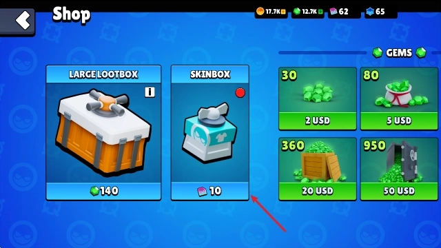 1、首先进入商店里,在商店中能够消耗宝石开启宝箱,获取武器、皮肤卷之类的奖励。