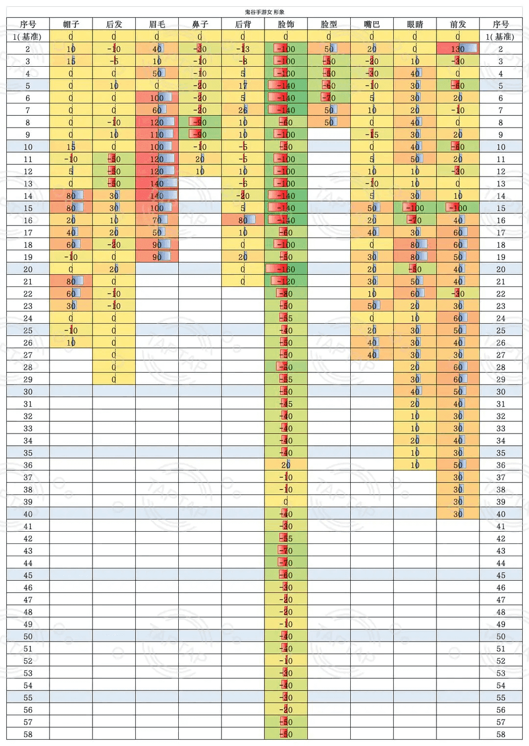 所有数据皆以1号位作为基准,依据此基准进行上下波动。