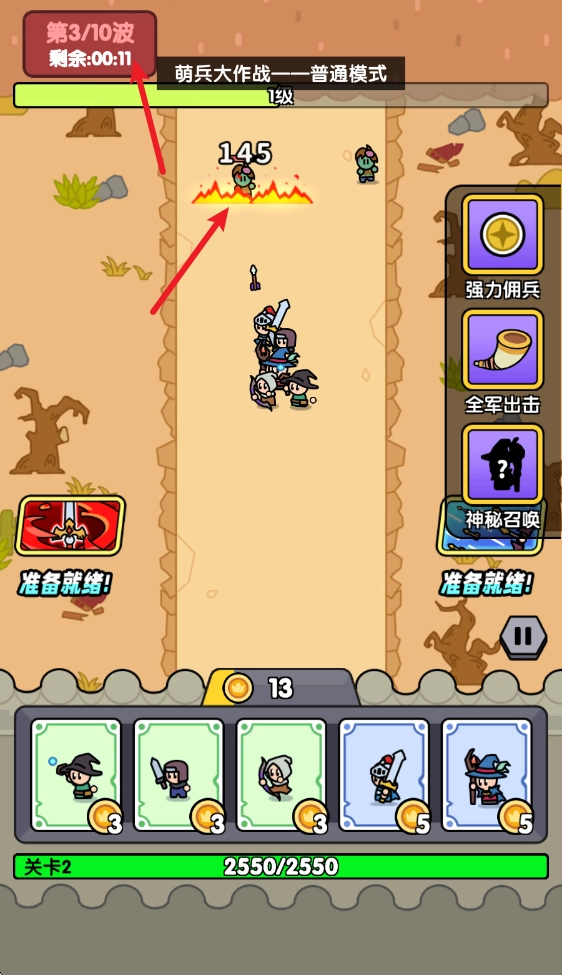 在当前阶段,若残余的敌方力量未被及时清除,或是我方的防御阵线出现缺口,游戏便会结束;想要赢得胜利,关键在于根据不同阶段敌人的特点,灵活调整我方的兵力配置,选择能有效压制对手的兵种进行部署。