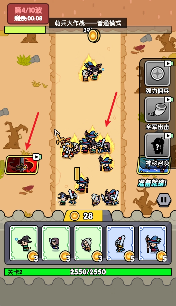 进入游戏界面后,屏幕下方会显示可供召唤的己方单位,点击对应单位图标便能消耗当前拥有的货币进行召唤,而这种货币会随着时间自动增加。