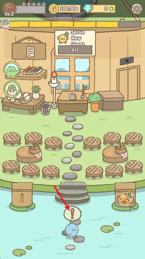 要是没有客人了,按一下门口的铃铛就能吸引客人过来,客人出现后得点一下他们,不然他们会直接走掉。