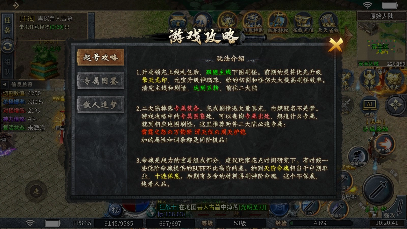 擎天龙印:消耗灵符就能升级,能提升切割伤害与杀怪爆率,打怪效率会大幅提高。