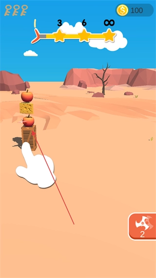 1. 按照提示拖动飞镖,对准带有苹果的木箱,调好角度后射出飞镖。