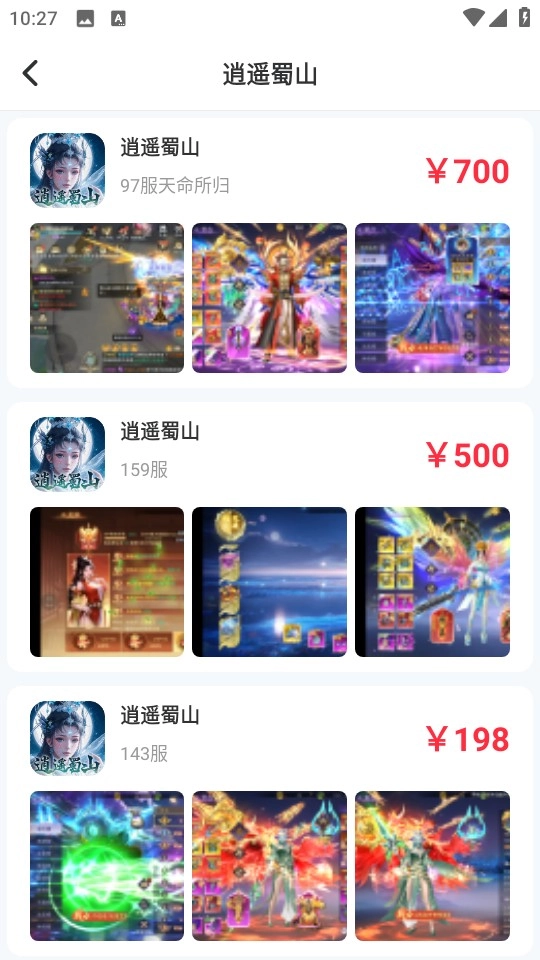 4、随意挑选一款所需的游戏账号,在此,小编以“逍遥蜀山”这款游戏为例。