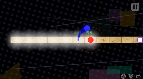 点击操作来控制小球移动到右侧的圆圈中,刚开始尝试时可能会觉得有些难度,建议跟着音乐的节奏进行点击——每当重音出现时点击一次,就能让小球保持直线前进;而如果点击速度比节奏快半拍,小球则会向上或向下移动。