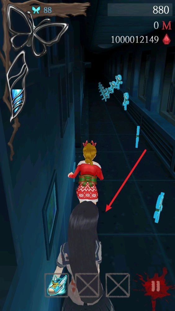 玩家需要一直奔跑来躲开身后追击的鬼魂,撞到障碍物会减慢速度,严重时还会被抓住。