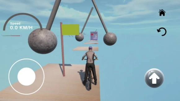 进入游戏界面后,玩家能借助屏幕上的虚拟操控杆来调整自行车的行进方向。不管是行驶在开阔平坦的路面,还是穿梭于布满各种障碍物的复杂赛道,都得精准灵活地控制好车辆。