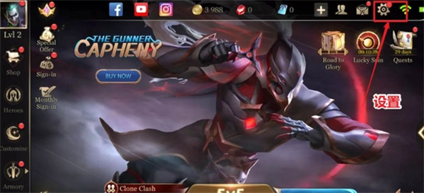 进入游戏后,点开右上角的齿轮样设置。