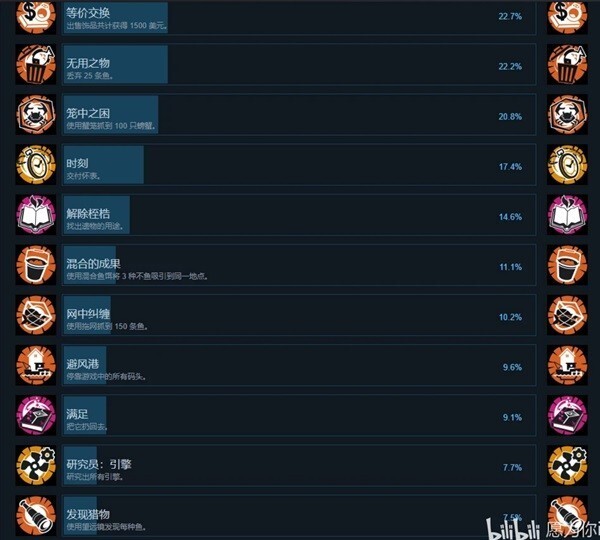 为了生计奔波:达成卖鱼赚取2500的成就。这里分享一个赚钱小窍门,捕蟹笼现在没有放置位置的限制,完全可以直接扔在有商店的港口附近(只要捕蟹笼显示下方有大量螃蟹就行),这样收取螃蟹去售卖以及修理笼子就不会花费太多时间,毕竟捕蟹笼扔远了其实也没什么不同。