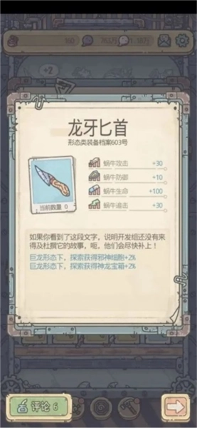 1-严格来讲,《最强蜗牛》不只是一款游戏,更是一个可以互动体验的故事载体。游戏中的每一项功能,不管是基础常见的还是独特特殊的,都承载着一段故事,与整体的系统架构和世界观深度契合,每一处细节都构成了整个故事的有机组成部分,共同完整地展现出故事的全貌。
