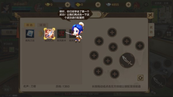 角色等级达到5级后,方可学习门派专属武功,以此提升角色的战力。