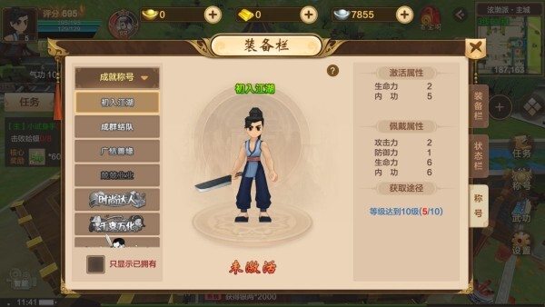 称号栏可查看角色已获取的称号,且这些称号能为角色带来额外的属性加成。