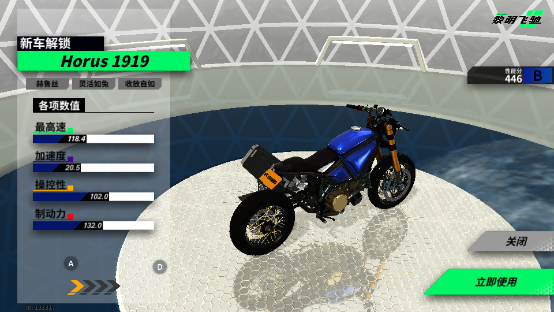 资源道具系统:资源道具可用于提升摩托车性能或购置更优质的设备,且能无限次使用,以此激励玩家积累资源。