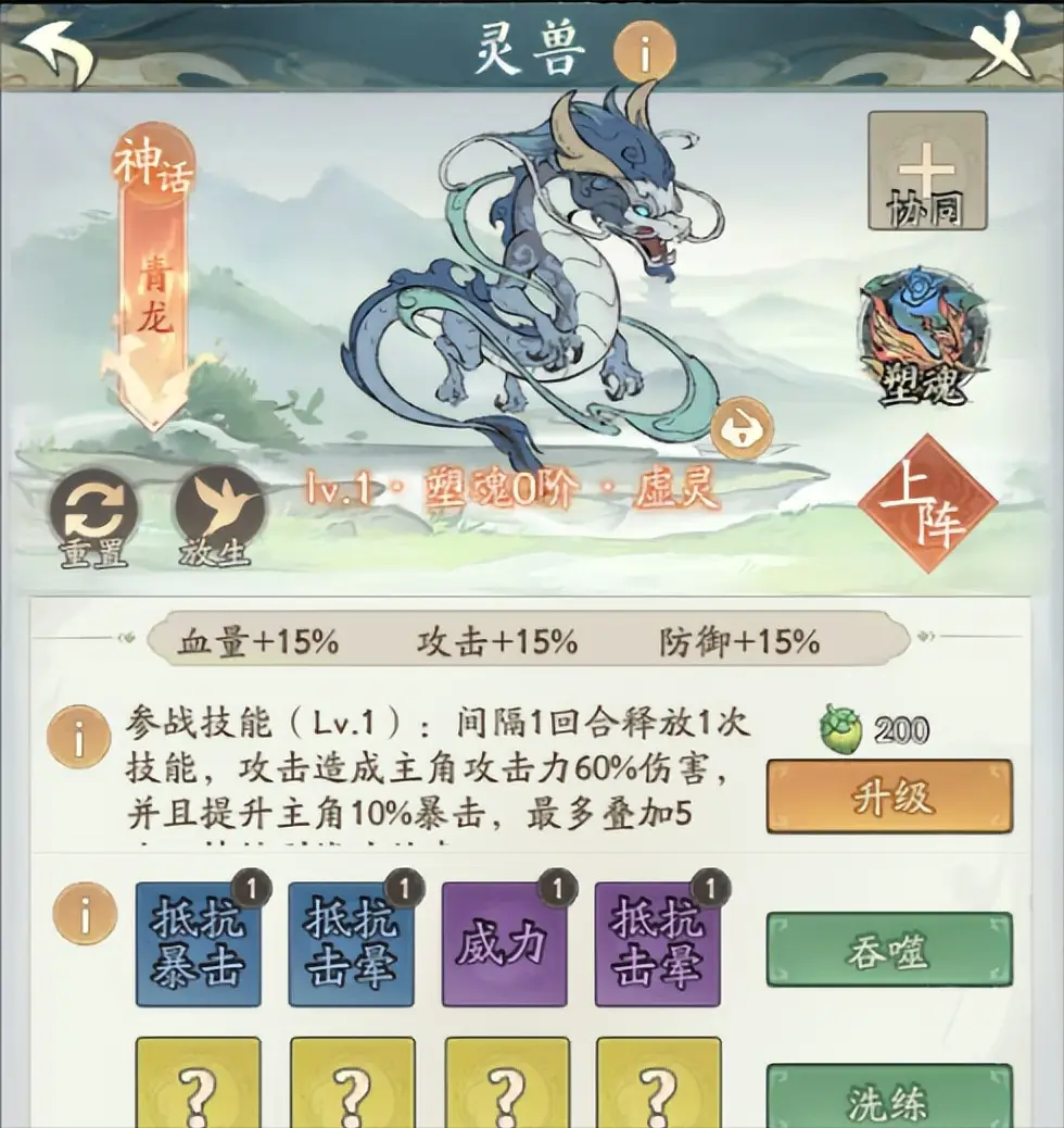 关于灵兽的搭配选择,主要有两种思路:一种是主选应龙,协同位搭配玄武或鸾鸟这类能提升生存能力的灵兽;另一种则是组成双应龙的组合,以此来追求极致的伤害输出。