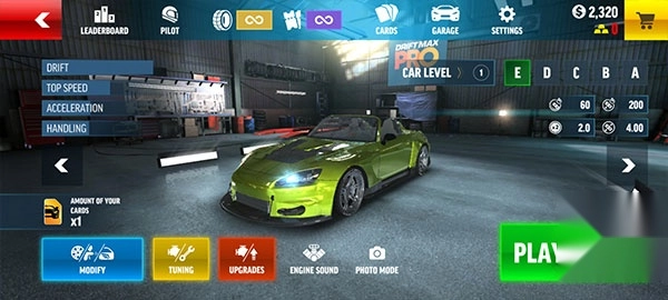 选择您的漂移赛车,对其进行自定义设置并开始驾驶。