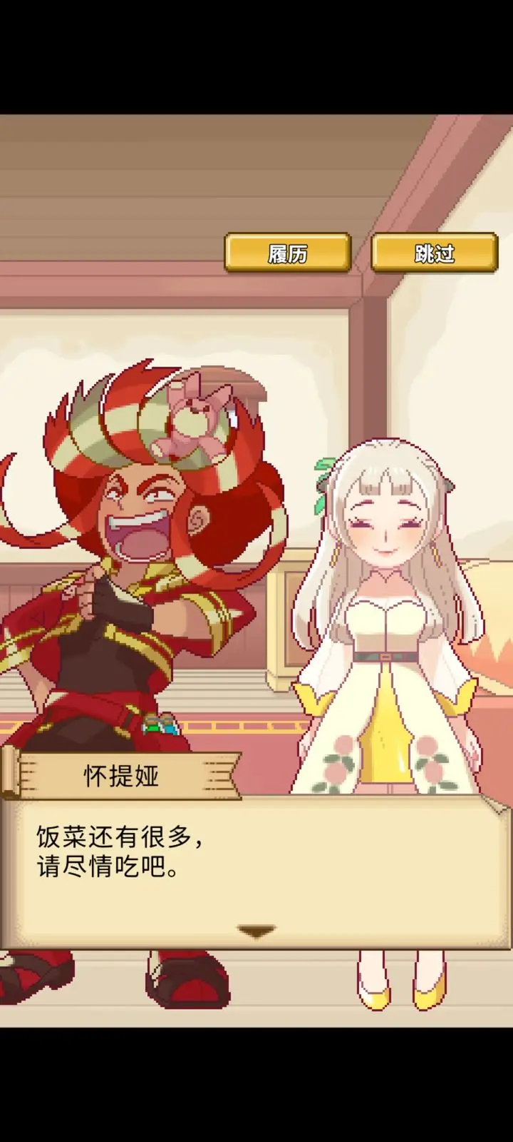 像素风的游戏画面,温馨的人物角色。