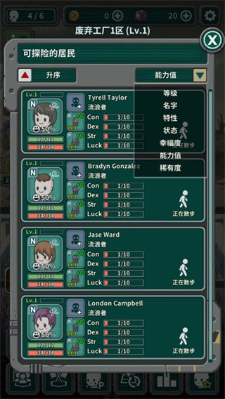 你可以挑选想要一起去探险的居民,依据他们各自的能力值,让他们陪伴你共同进行探险活动。