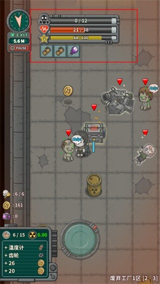 在探险的过程里,随时可能释放出带有放射性的病毒,还会遭遇怪物的攻击,所以你得时刻留意自身的血量情况。