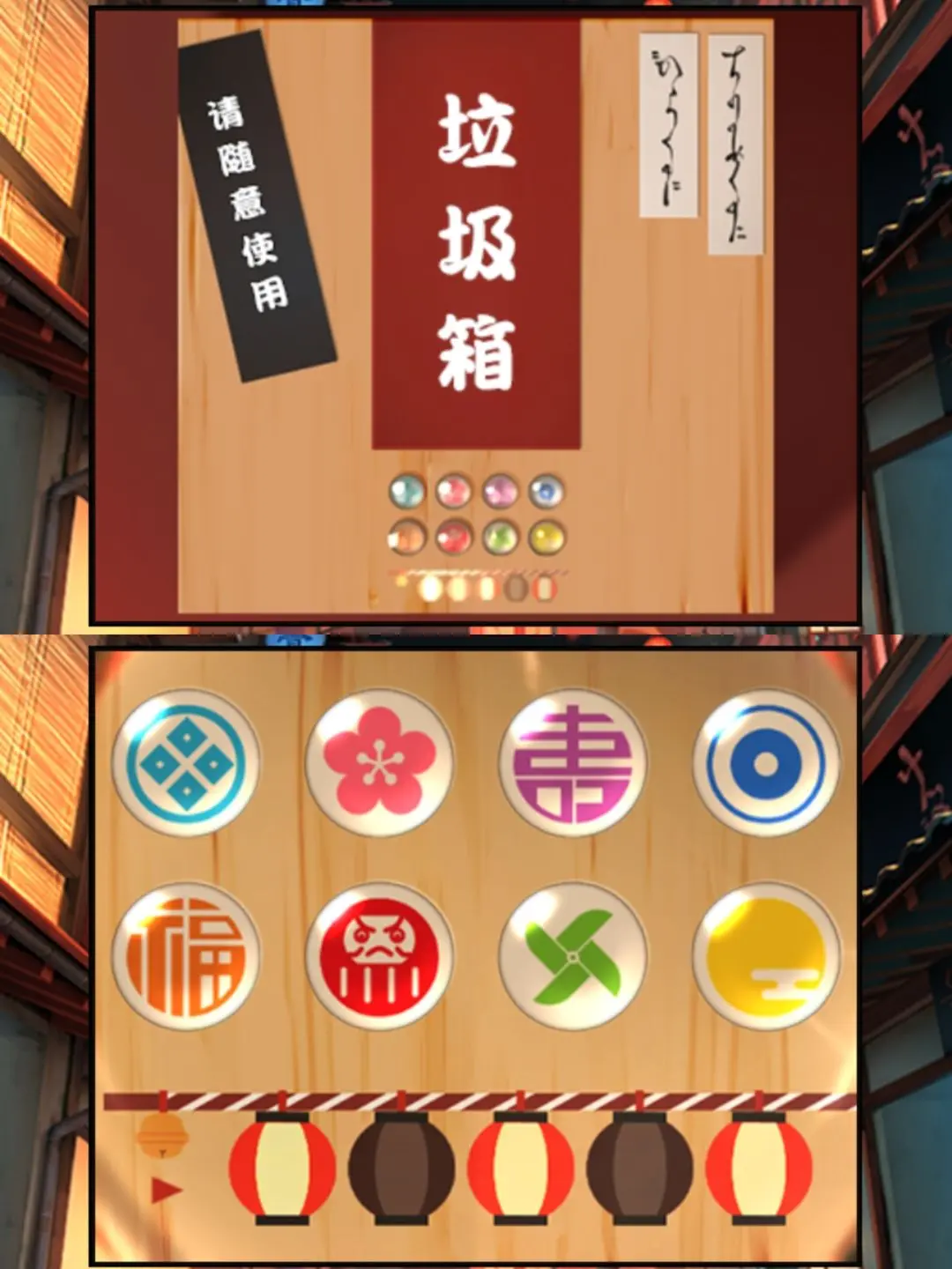 按照修理铺垃圾箱铃铛上小箭头的指示顺序,依次查看并点击第一、三、五个灯笼(即按下图标注的①②③顺序点击就行)