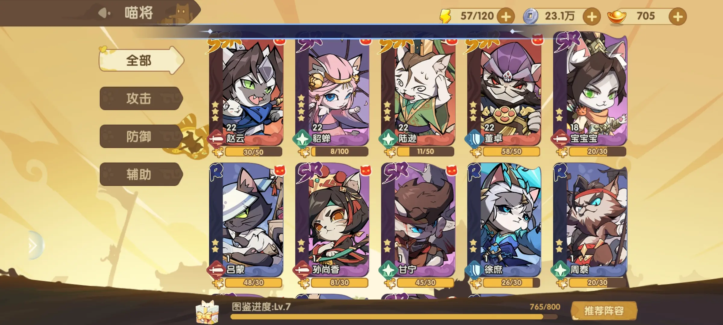 海量不同品质的Q版猫咪三国角色,每个角色都有其独特的技能和属性。