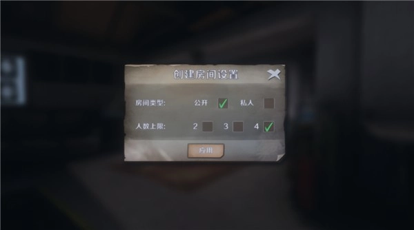 创建房间的设置(若设为公开,其他玩家无需密码就能进入你的房间)