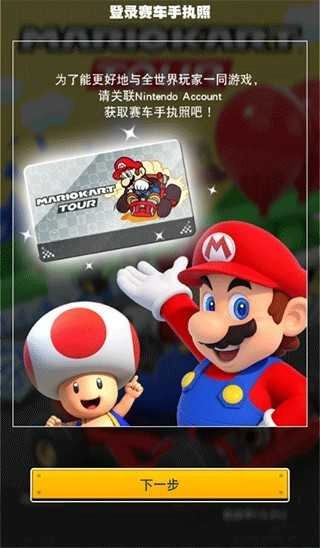 1. 要启动马里奥赛车巡回赛,必须绑定Nintendo Account账号。首次进入游戏时,系统会自动跳转到登录界面,此时点击“下一步”就能继续进行设置。