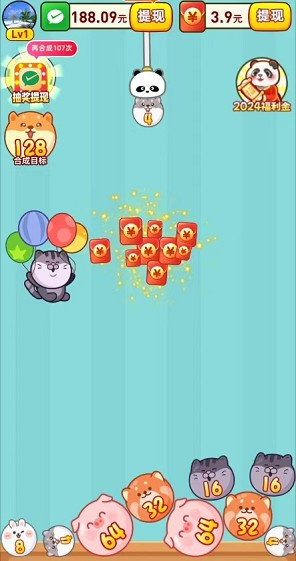闯关就能领取丰富红包,合成萌宠即可获得红包奖励。
