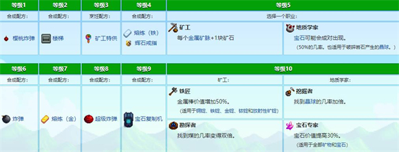 采矿技能的提升方式是使用镐类工具敲碎岩石,每提升一级,十字镐的熟练度就会增加1点。无论是用十字镐、炸弹,还是借助活动中的怪物破坏岩石,都能让你获得采矿技能点。
