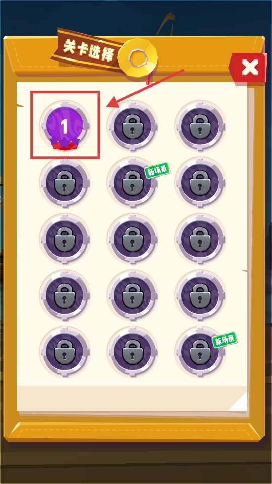 1. 进入游戏后,点击【1】号关卡开启游戏,其余关卡需通关后才能解锁。