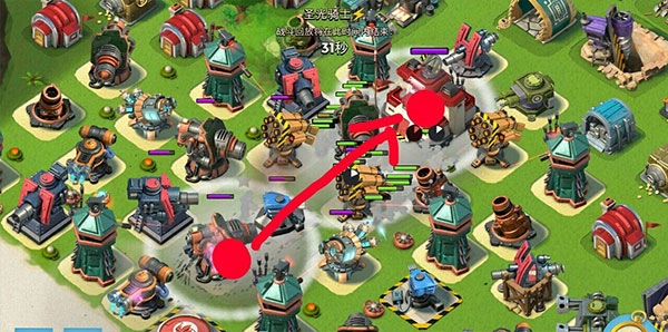 先让野人登陆,接着将他们引导至距离最近的一处防御设施,在海岛奇兵这款游戏里,完成这样的登陆操作仅需两枚烟雾弹。